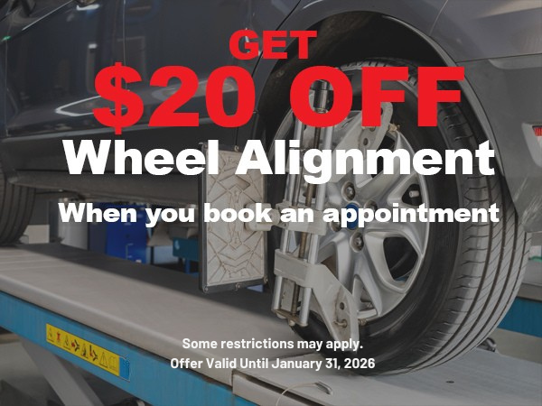 Get $20 OFF a wheel alignment, when you book an appointment.